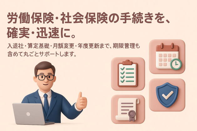 入退社・算定基礎・月額変更・年度更新まで、期限管理も含めて丸ごとサポートします。